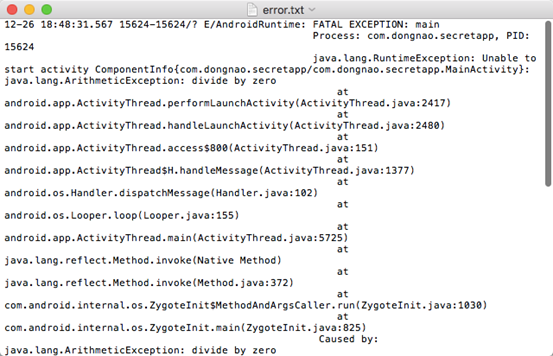 我们在Activity中主动写一个bug,运行产生这样的日志: