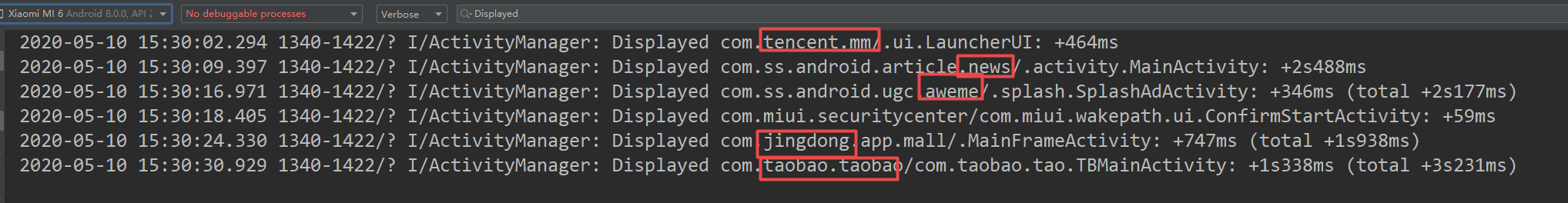 快捷查看APP启动时间: