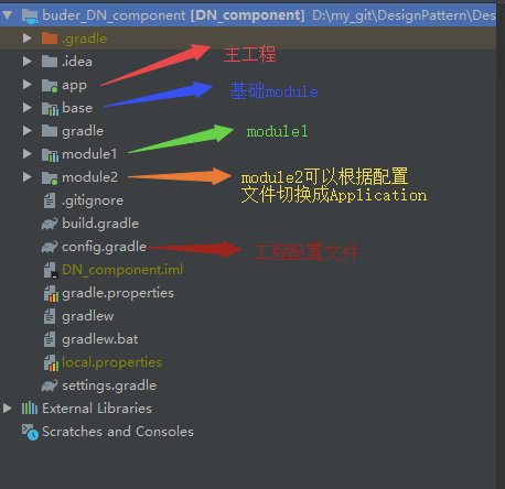 config.gradle内容就是配置了一些基础参数,是否切换成application的参数isModule就在这个文件里,后续我们修改这个值就可以完成library与application的切换。