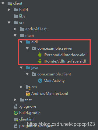 2.1 将server端创建的两个AIDL文件连同文件夹一起拷贝到client端