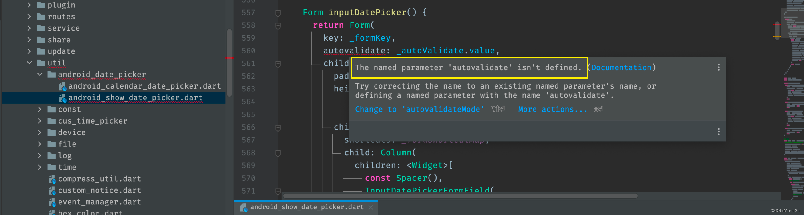 提示我 The named parameter 'autovalidate' isn't defined,意思是没有定义的命名参数 autovalidate 。