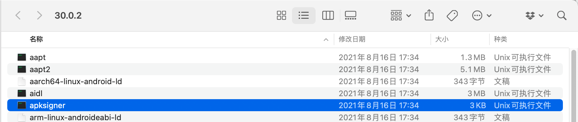 以我本地的 Android SDK 30.0.2 版本为例, apksigner 工具的位置在