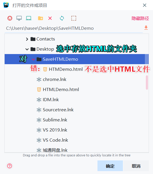 启动 WebStorm,点击 "文件’>>打开文件夹,找到你保存 HTML的文件夹,并选中。