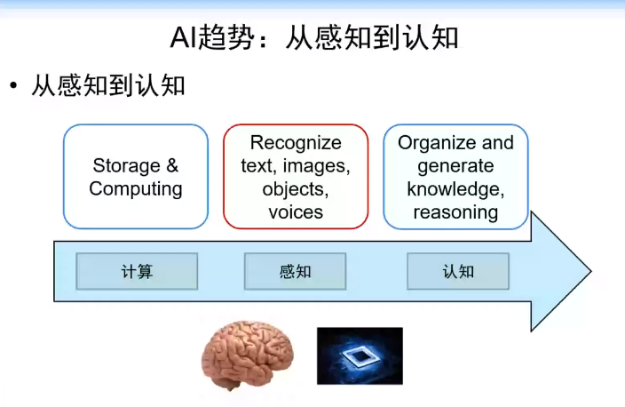 - 第二代——感知智能:大数据驱动的统计学习方法初步实现 了针对文本、图像 、语音等的感知与识别。