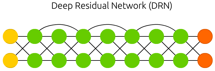 Deep residual networks (DRN) are very deep FFNNs with extra connections passing input from one layer to a later layer (often 2 to 5 layers) as well as the next layer. Instead of trying to find a solution for mapping some input to some output across say 5 layers, the network is enforced to learn to map some input to some output + some input. Basically, it adds an identity to the solution, carrying the older input over and serving it freshly to a later layer. It has been shown that these networks are very effective at learning patterns up to 150 layers deep, much more than the regular 2 to 5 layers one could expect to train. However, it has been proven that these networks are in essence just RNNs without the explicit time based construction and they’re often compared to LSTMs without gates. 深度残差网络(DRN)是非常深的FFNNs,有额外的连接将输入从一层传递到下一层(通常是2到5层)以及下一层。与其试图寻找一个跨5层将一些输入映射到一些输出的解决方案,不如强制网络学会将一些输入映射到一些输出+一些输入。基本上,它为解决方案添加了一个标识,将旧的输入传送到新层。 研究表明,这些网络在学习高达150层的模式方面非常有效,远远超过人们可以预期训练的常规2至5层。然而,已经证明,这些网络本质上只是没有显式的基于时间的构造的RNNs,它们经常被比作没有门的LSTMs。