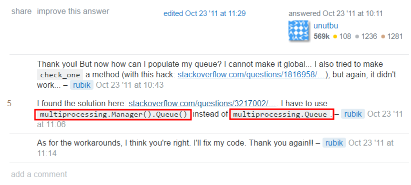 multiprocessing.Manager().Queue() instead of multiprocessing.Queue