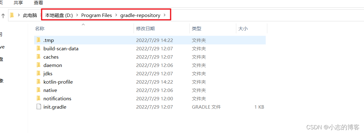 创建本地仓库目录,(lz再D:\Program Files\目录下创建了名称为gradle-repository文件夹的仓库作为仓库),如下图所示: