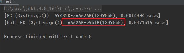 public class Test { public static void main(String[] args) { { byte[] a = new byte[64 * 1024 * 1024]; } System.gc(); } } -