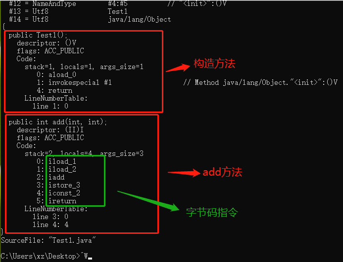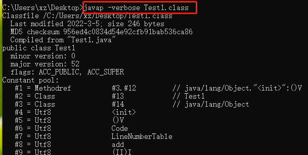 执行javap命令,分析.class字节码文件