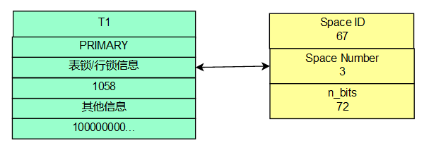 由于是行级锁,所以在【表锁/行锁信息】中【Space ID】等于67,【Page Number】等于3,【n_bits】等于72