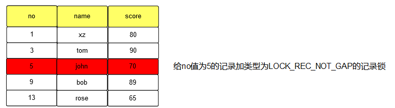 - 意味着不允许别的事务在no值为5的记录前面的间隙插入新记录,即:no列的值在区间(3,5)的新记录是不允许立即插入的,当gap锁释放才可以插入。