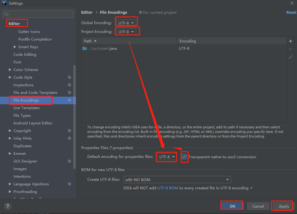 ProjectEncodings:选择【UTF-8】。