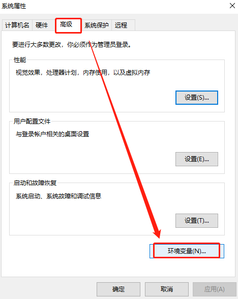 3、选择【高级】,点击【环境变量】,如下图: