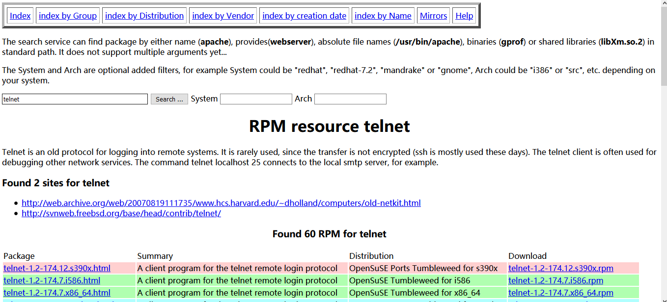 http://www.rpmfind.net/linux/rpm2html/search.php?query=telnet&submit=Search+…&system=&arch=