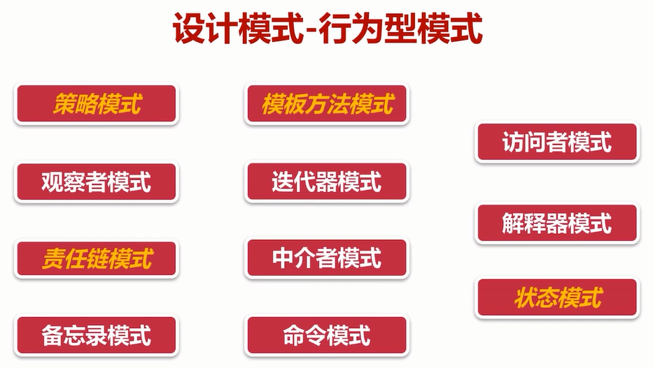 目录 一、7大设计原则二、5种创建型模式三、7种结构型模式四、11种行为型模式 一、7大设计原则 二、5种创建型模式 标黄色字体为常用的设计模式工厂方法模式和抽象工厂模式都属于工厂模式 三、7种结构型模式 标黄色字体为常用的设计模式 四、11种行为型模式 标黄色字体为常用的设计模式