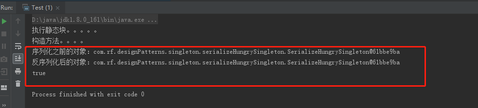 2、定义一个测试类,序列化饿汉式单例模式,并反序列化,查看是否是同一对象