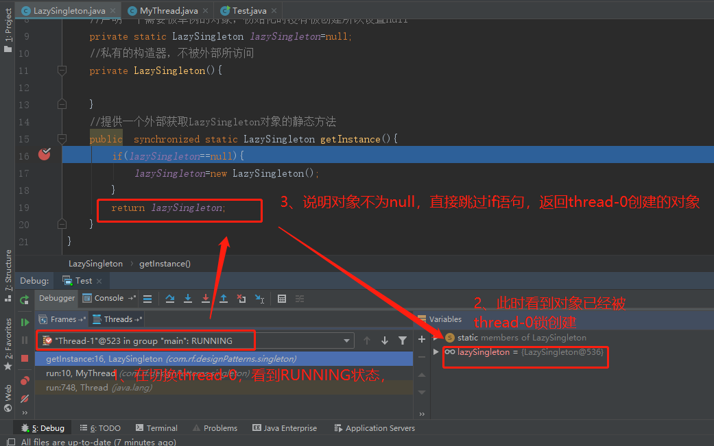 - 三、懒汉式(2个线程创建不同对象的debug情况)