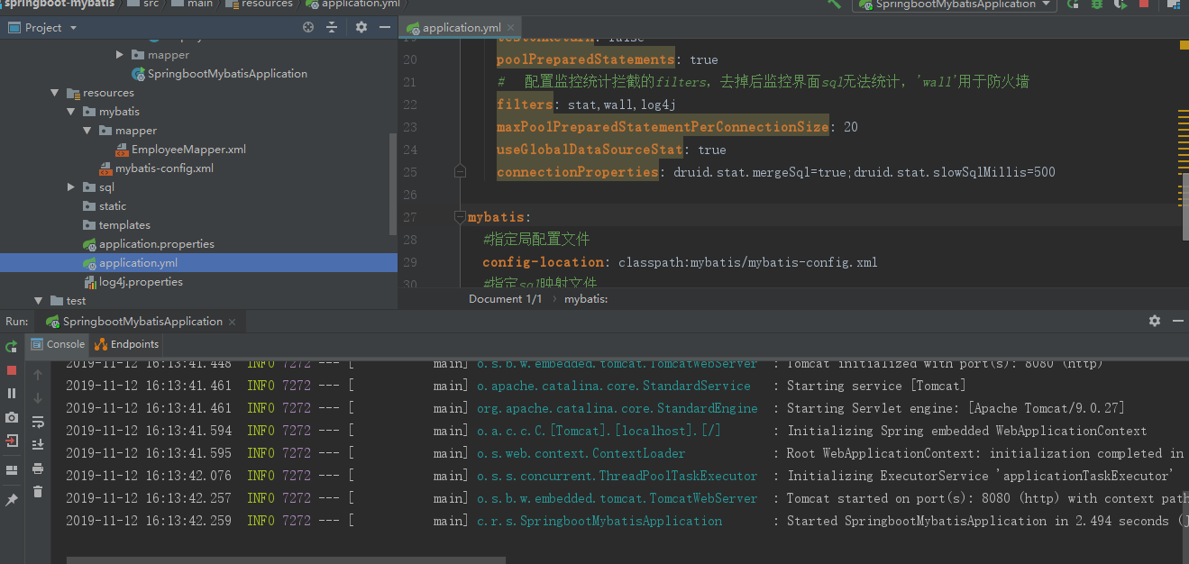 五、在application.yml配置文件中指定全局配置文件和sql映射文件位置