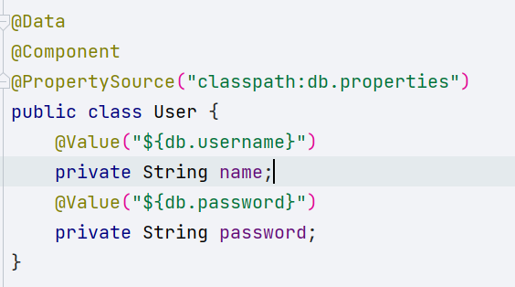 Created by IntelliJ IDEA * * @author webrx [webrx@126.com] * @version 1.0 * @since 17 */ @Data @Component public class Student { @Value("1111") private int id; @Value("1.2") private double money; @Value("李青") private String name; @Value("true") private boolean isstu; @Value("java,php,html,mysql,php,html") private String[] arrstr; @Value("10,20,30,40") private int[] arrint; @Value("#{'java,php,html,mysql,php,html'.split(',')}") private Set set; @Value("#{'java,php,html,mysql,php,html'.split(',')}") private List list; @Value("#{{name:'lisi',age:18,is:true}}") private Map map; @Value("#{t1.name}") private String tname; @Value("#{student.id * 2}") private int num; @Autowired private Teacher t3; @Value("${books}") private String[] tarr; @Value("#{'${books}'.split(',')}") private Set tset; @Value("#{${db.map}}") private Map tmap; @Value("#{{t1,t2,teacher}}") private Teacher[] teachers; @Value("#{{t1,t2,teacher}}") private List listts; }