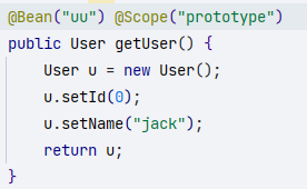 @Bean(name="uu",initMethod = "init",destroyMethod = "close") @Scope("singleton") @Lazy