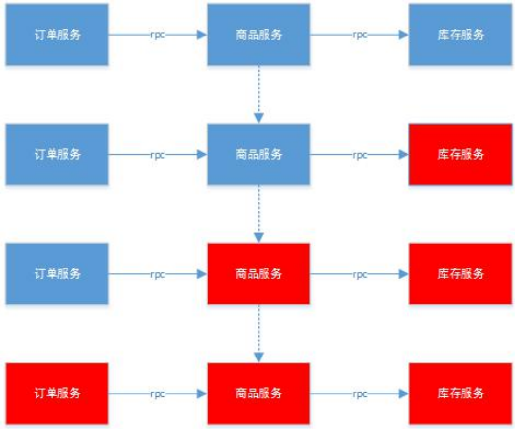 服务雪崩 多个微服务之间调用的时候,假设微服务A调用微服务B和微服务C,微服务B和微服务C又调用其他的微服务,这就是所谓的”扇出。 如果扇出的链路上某个微服务的调用响应过长或者不可用,对微服务A的调用就会占用越来越多的系统资源,进而引起系统雪崩,所谓的”雪崩效应”。