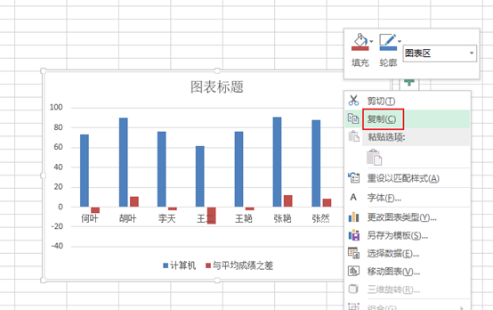 第五步:将上面Excel中的图表插入Excel 在Excel中右键单击图表,选择【复制】