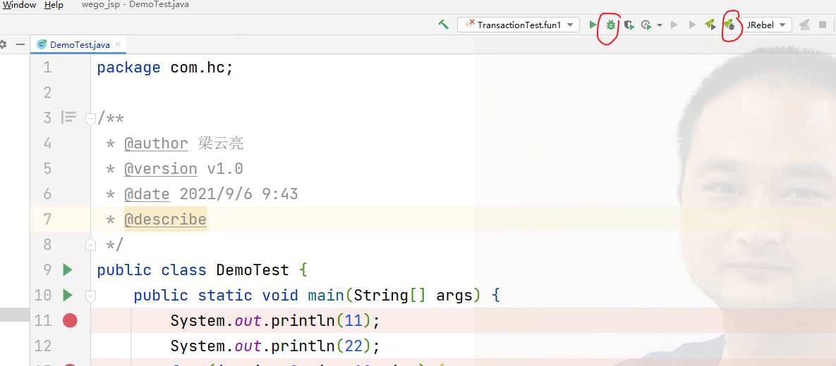 点击红色方框中的按钮,程序向下执行一行。如果当前行有方法调用,这个方法将被执行完毕返回,然后到下一行。