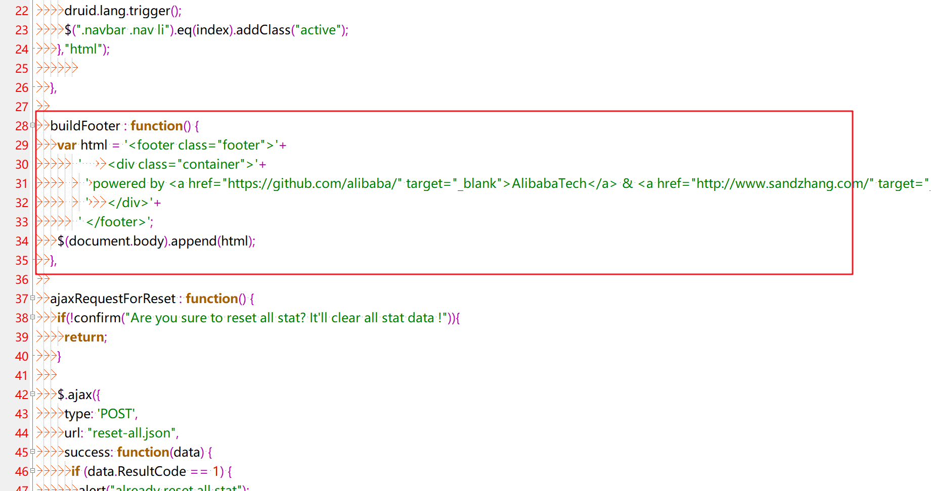 找到support/http/resource/js/common.js文件, 修改buildFooter 方法