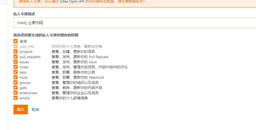 Gitee生成token