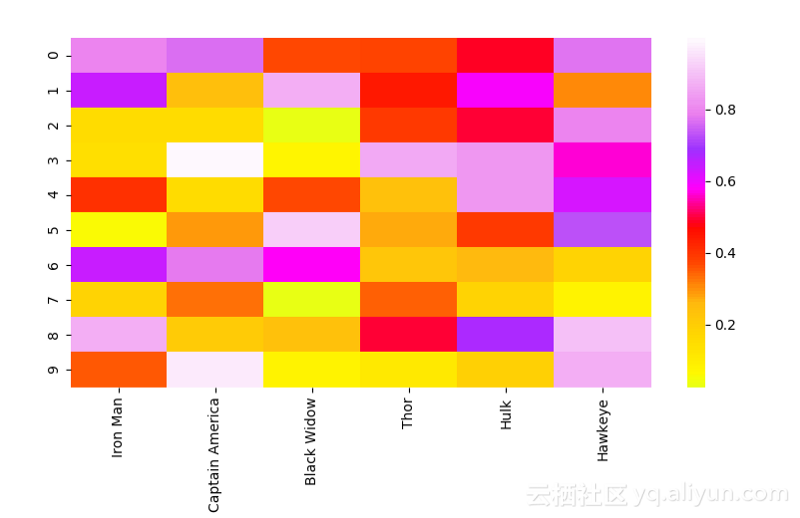 现在来看下代码:与matplotlib库相比,seaborn库可用于更高级的图表,通常也需要更多的组件,如更多的颜色、图形或者变量。Matplotlib库用于显示图表,numpy用于生成数据,而pandas用于控制。绘图只是调用一个简单的seaborn函数,如果你发现了一些在视觉上很特别的东西,通过这个函数,还可以设置颜色映射。