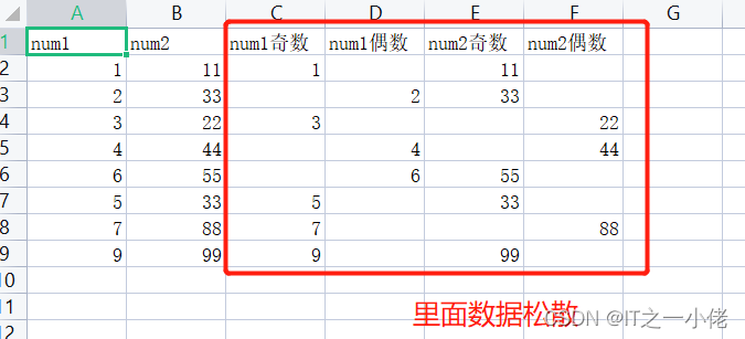 num2奇数 11.0 33.0 NaN NaN 55.0 33.0 NaN 99.0