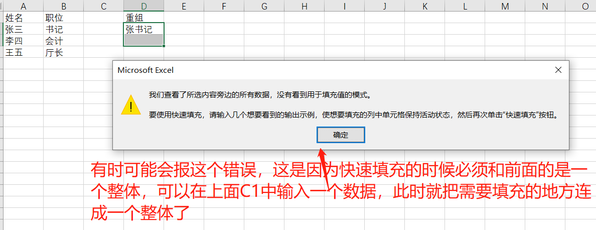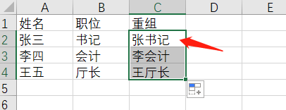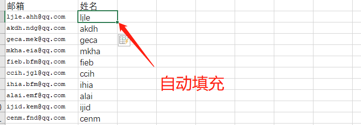 案例:(姓名下面的第一个中随便输入,接下来自动填充会根据规律来进行自动填充)(有时候不易发现规律的时候,可以多输入两列再自动填充)