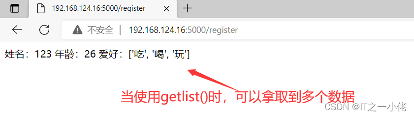 # hobby = request.form.get('hobby') # get只能获取到多个值中的第一个