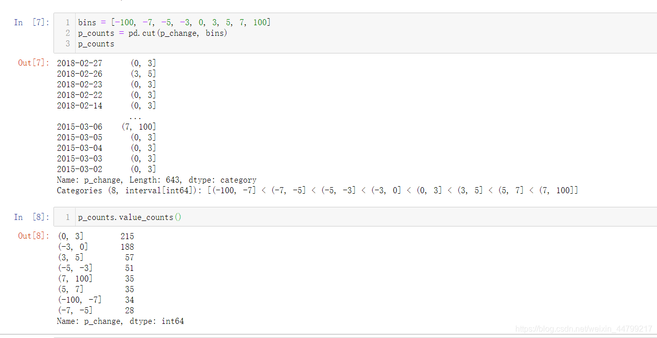 - pd.qcut(data, q): 【把数据大致分为数量相等的几类】