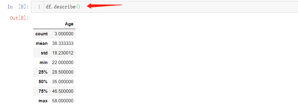 综合分析: 能够直接得出很多统计结果,count, mean, std, min, max 等