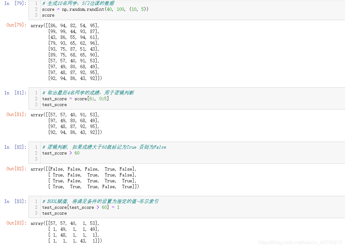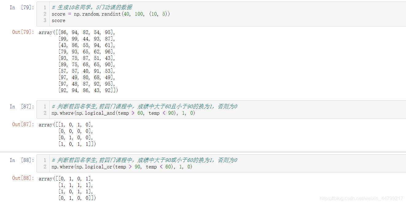 1 逻辑运算# 生成10名同学,5门功课的数据