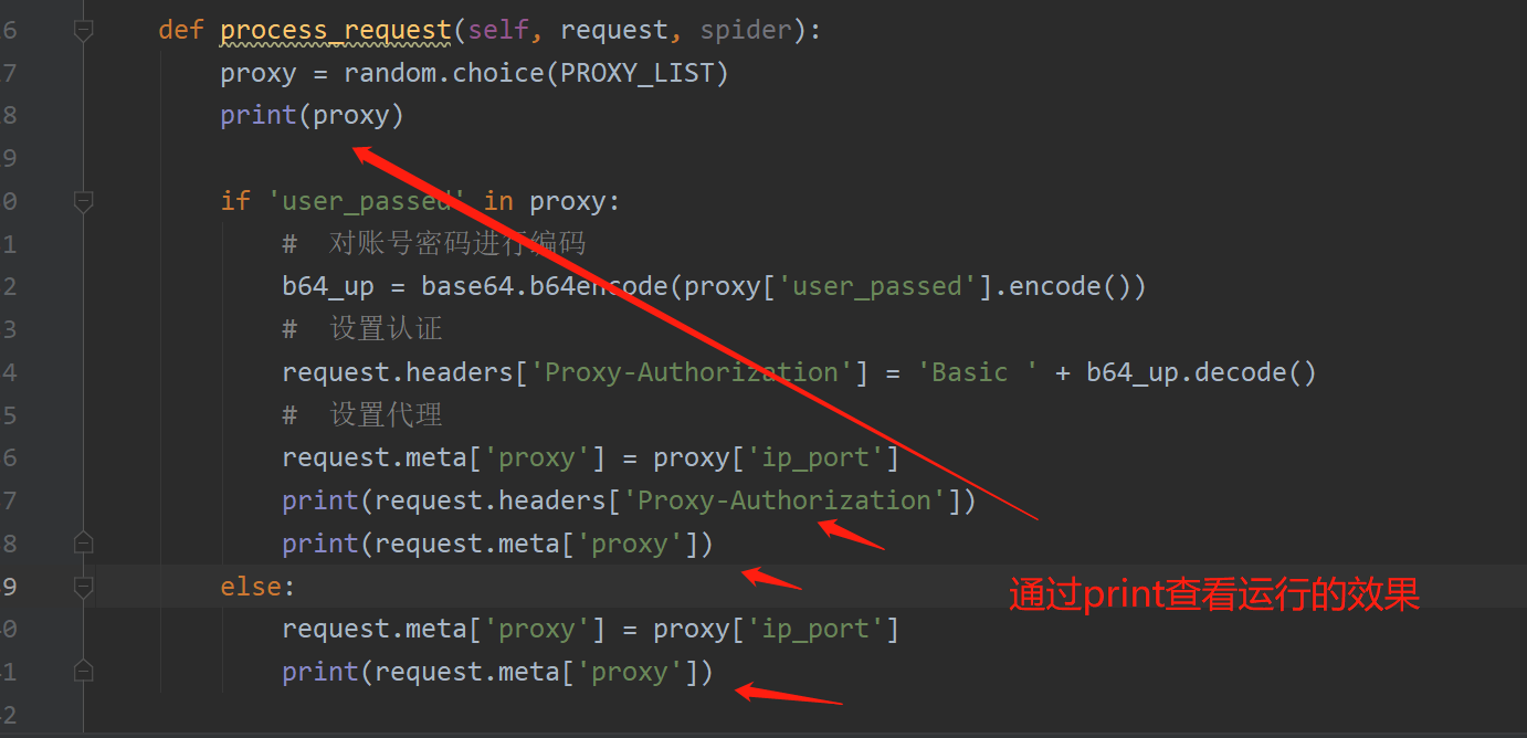 在使用了代理ip的情况下可以在下载中间件的process_response()方法中处理代理ip的使用情况,如果该代理ip不能使用可以替换其他代理ip