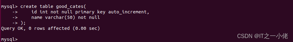 假如目前只有一个goods表,想要增加一个商品分类信息,简单通过goods表无法完成商品分类的添加,这时可以再创建一个商品分类表,把goods表中的商品分类信息添加到该表中,将goods表中的分类名称更改成商品分类表中对应的分类id。【关于goods表创建方式查看之前博文】