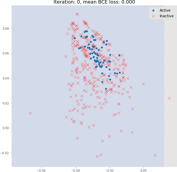 即使是 3 个图卷积层也可以生成有意义的二维分子嵌入,这些嵌入可以使用线性模型进行分类,在验证集上具有约 82% 的准确度。