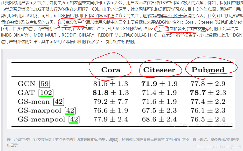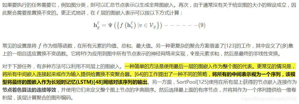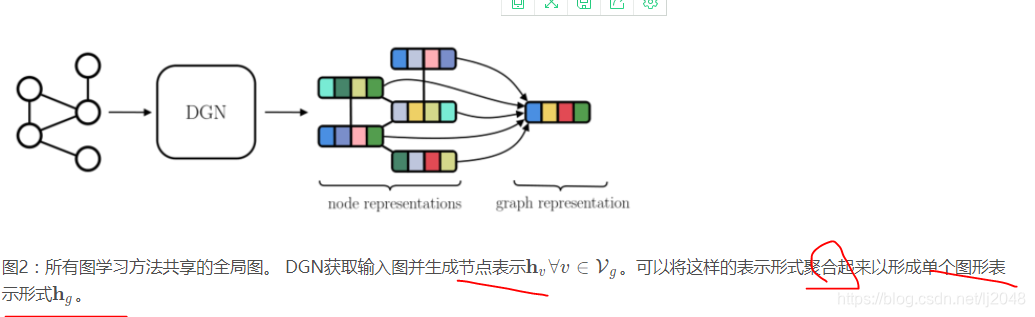 为了进一步阐明我们对术语的使用,这里DGN指的是产生最终内部节点表示 的体系结构的子集。可以通过将每一层计算得到的所有内部表示连接起来(进行级联),也可以通过获取最后一层生成的内部表示来获得。因此,术语DGN不包括全局节点聚合机制,也不包括最终分类器或回归器。通过这种方式,我们在体系结构上保持了一个模块化的视图,并且我们可以将任何DGN与一个通过使用最终的内部节点表示作为输入来解决任务的预测器相结合。