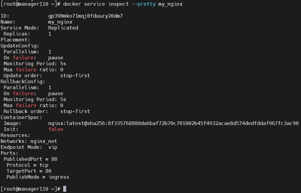 服务创建,子命令有create, inspect, update, remove, tasks。(docker service--help查看帮助)