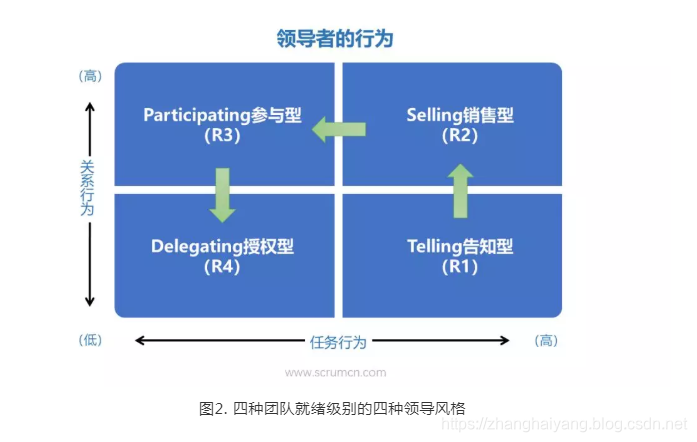R2:推销型领导风格的ScrumMasterR2象限是敏捷化的起点。在R2阶段,相关团队成员进入自我决策阶段。