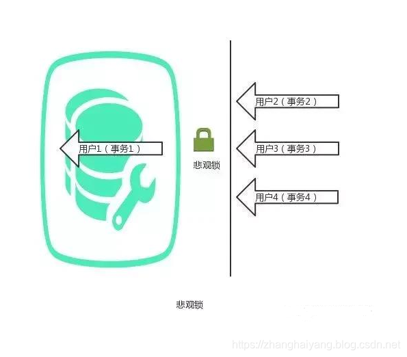 悲观锁(Pessimistic Concurrency Control),第一眼看到它,相信每个人都会想到这是一个悲观的锁。没错,它就是一个悲观的锁。那这个悲观体现在什么地方呢?悲观是我们人类一种消极的情绪,对应到锁的悲观情绪,悲观锁认为被它保护的数据是极其不安全的,每时每刻都有可能变动,一个事务拿到悲观锁后(可以理解为一个用户),其他任何事务都不能对该数据进行修改,只能等待锁被释放才可以执行。数据库中的行锁,表锁,读锁,写锁,以及syncronized实现的锁均为悲观锁。