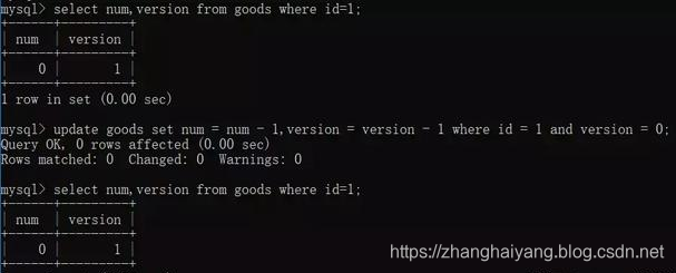 我们可以看到事务A成功更新了数据和版本号。事务B再进行购买更新数据,然后我们看影响行数和更新后的数据