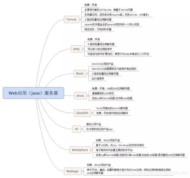 常见的Web应用服务器及其特点如下图所示:
