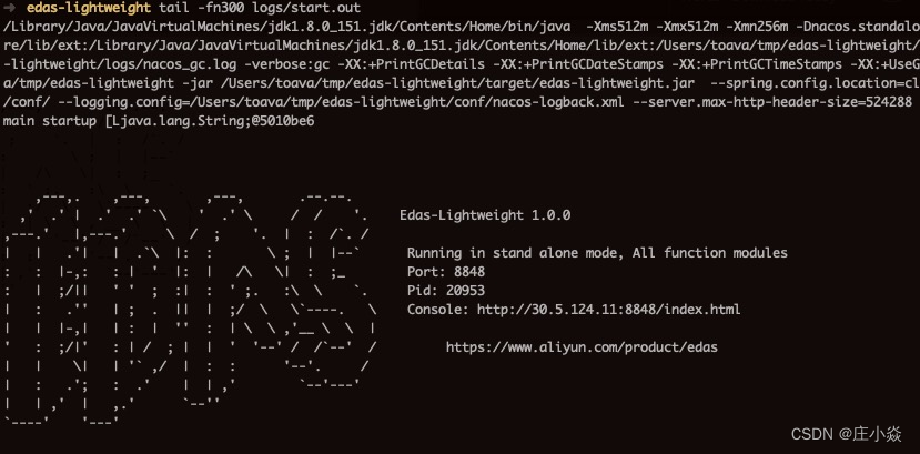 3. edas lightweight is starting,you can check the /root/edas-lightweight/logs/start.out