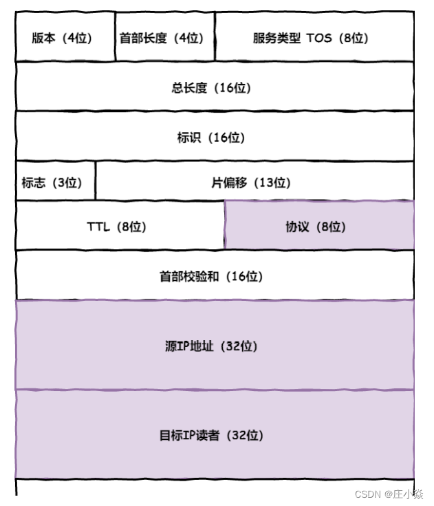 - TTL字段:IP 头中有⼀个 TTL 字段,是IP 数据报可以经过的最大路由数,每经过⼀个处理他的路由器此值就减 1,当此值为0则数据报将被丢弃,同时发送 ICMP 报⽂通知源主机 。
