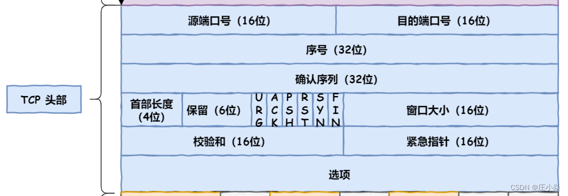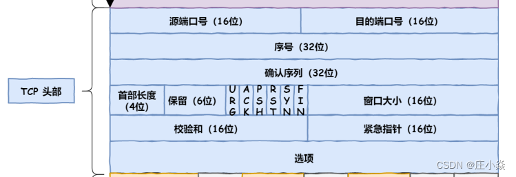 ⾸先,源端口号和⽬标端口号是不可少的,如果没有这两个端口号,数据就不知道应该发给哪个应⽤。接下来有包的序号,这个是为了解决包乱序的问题。