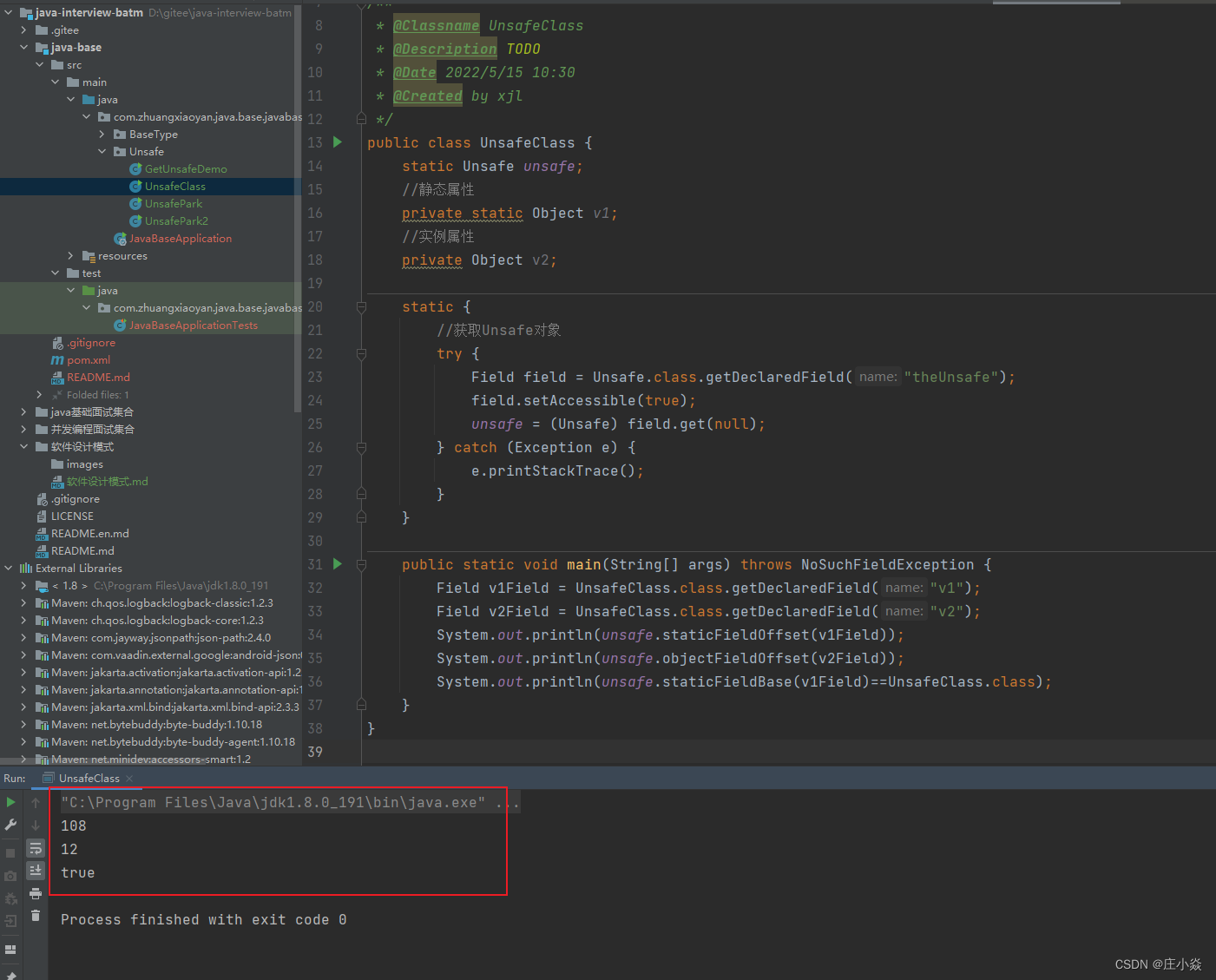 System.out.println(unsafe.staticFieldOffset(v1Field));