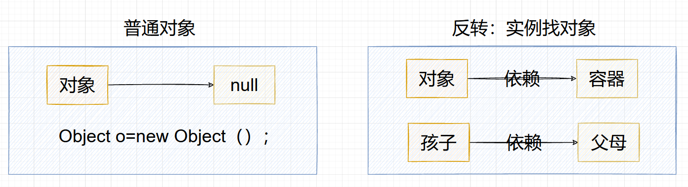 既然叫反转,肯定就有正转,正转其实就是对象去找实例,而反转就反过来了嘛,让实例来找对象;怎么找呢?当然是通过容器啦!
